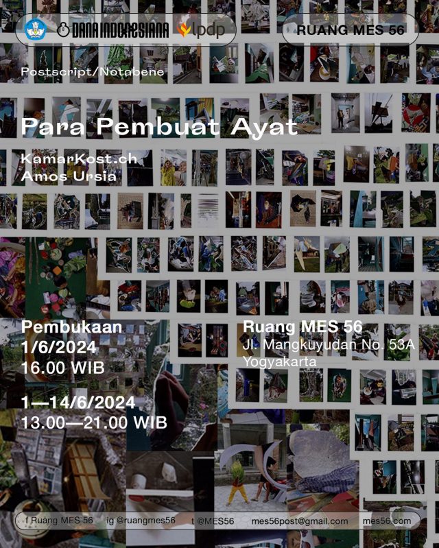 Pameran Postscript/Notabene “Para Pembuat Ayat” mengisahkan perjalanan KamarKost selama sembilan bulan hidup bersama masyarakat dusun Tanjung di kaki gunung Merapi, Cangkringan. Dalam perjalanannya, KamarKost mengalami dan menemukan esensi laku hidup dengan gestur merunduk: merunduk pada alam, merunduk pada leluhur, dan merunduk pada modernitas. Temuan ini sekaligus menjadi pengaruh besar atas praktik fotografi kolase yang telah… -