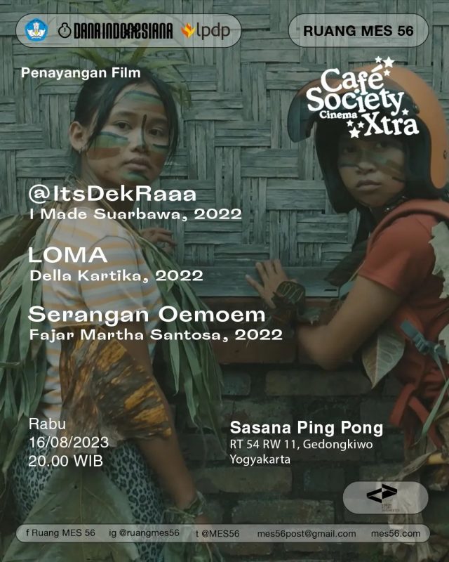 Café Society Cinema Extra! Rabu, 16 Agustus 202320.00 WIB Sasana Ping PongRT 54 RW 11, Gedongkiwo Program ini menghadirkan film-film yang mengangkat perjuangan anak-anak dalam menghadapi persoalan dalam kehidupan mereka mulai dari masalah pertemanan, keluarga, serta kota yang diserang monster mengerikan! Penayangan ini gratis & tanpa registrasi, silahkan datang langsung ke bioskop kami! - “@ItsDekRaaa”… -