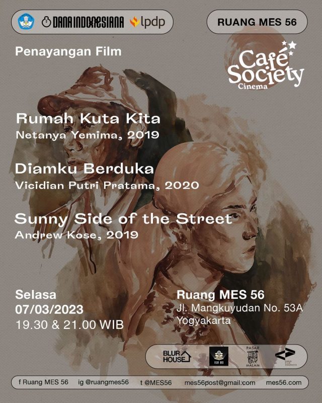 Bioskop Cafe Society minggu ini kembali hadir, dengan film karya Dwi Sujanti Nugraheni. Kalian bisa datang langsung ke bioskop kami yang terletak di Jl. Mangkuyudan No. 53A, karena acara ini gratis! Penayangan akan berlangsung pada : 13 Desember 2022 dalam dua sesi, yaitu pukul 19.30 & 21.00 WIB. Denok & GarengDwi Sujanti Nugraheni, 89 menit,… -