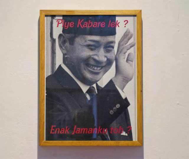 — Indeks (Bandung, Indonesia) Tulisan ini merupakan teks kuratorial yang ditulis oleh Indeks untuk pameran Ruang MES 56 "Suveying Surfacing" yang diselenggarakan di Galeri Ruang Dini, Bandung. I 1964 - 1971 Menjelang senjakala Demokrasi Terpimpin, transformasi Sekber Golongan Fungsional menjadi sebuah parpol ikut dibidani oleh seorang “dukun” politik. Perwira militer ini gandrung akan ramalan Jayabaya…