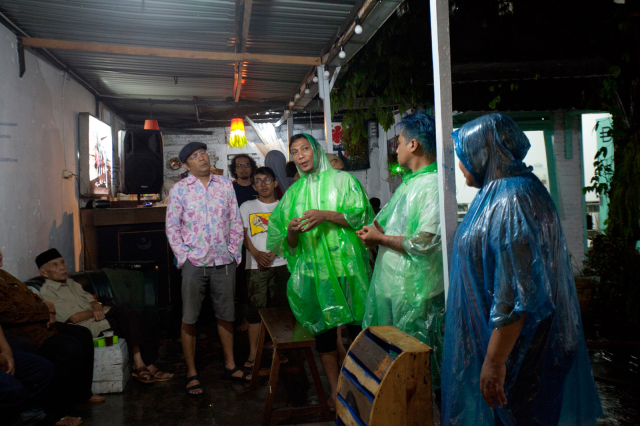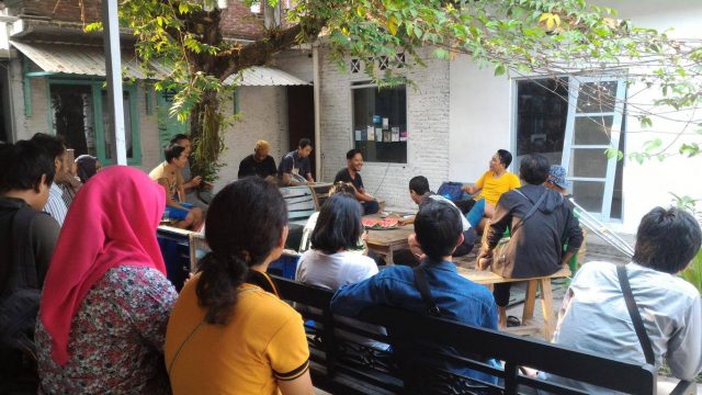 Meski hujan seperti tumpah, tapi warga Mantrijeron dan kawan-kawan meluangkan waktu untuk hadir, sungguh salute atas dukungannya. Jangan lupa datang ke Sarasehan pada Senin 4 Mei 2015 jam 16.00 wib. Silakan mampir ke Ruang MES 56, galeri buka Selasa – Sabtu jam 12.00 – 21.00 wib. Seniman / Artists: Ruang MES 56 dan Komunitas Mantrijeron…