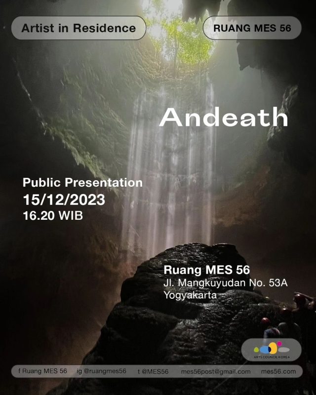 Ruang MES 56 Artist in Residence program Andeath is an artist based in Seoul who carries out artistic activities that interpret and activate everyday elements in new ways. Recently, she has been presenting ‘Geologic Bakery’, which use bread baking as a method of tracking the formation process of mountains and various geological sites. Public Presentation:15 December… -